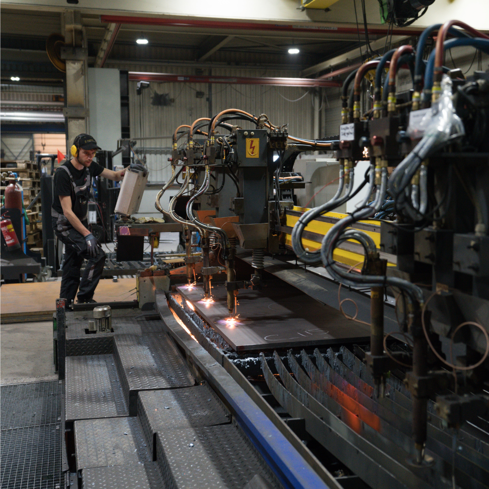 Autogeen snijden wordt toegepast voor het snijden van stalen platen met afmetingen tot 8.000 x 4.000 mm en plaatdiktes tot 150 mm. De machine is uitgerust met zes snijtoortsen, waarmee tot zes branders gelijktijdig kunnen snijden. Tosec is EN 1090-2 gecertificeerd en beschikt over Lloyd’s Register hermerkbevoegdheid.