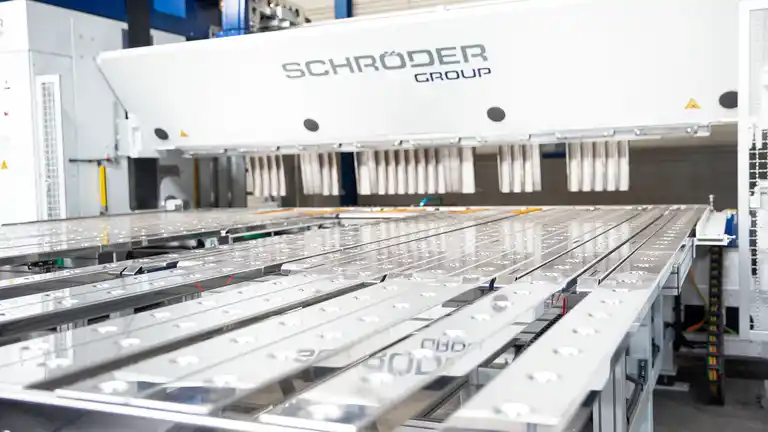 Een vacuümklem fixeert de plaat nauwkeurig op de machinetafel, zodat zelfs grote of dunne werkstukken precies kunnen worden gepositioneerd. Korte flenzen, gelijkmatige radii en functionele ribben kunnen net zo eenvoudig worden gerealiseerd als gevoelige of gecoate materialen – en dat allemaal zonder zichtbare afdrukken of extra gereedschapswissels.